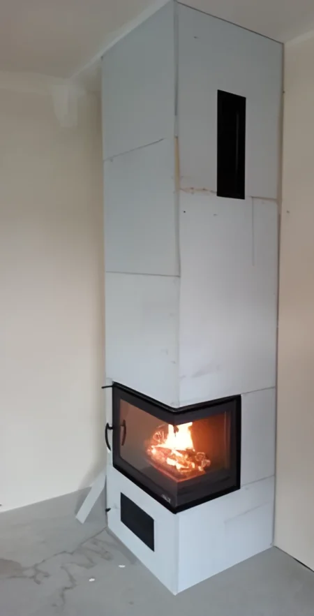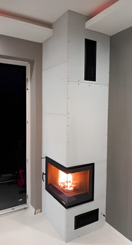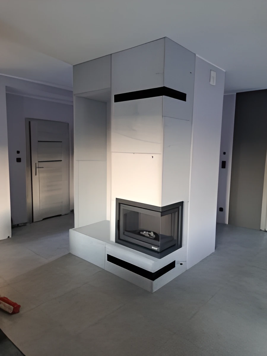 4. Szpachlowanie kominka z siatką przy wykorzystaniu materiałów SKAMOL (do wykończenia: narożnikiem + gładzią oraz malowaniem – przez Klienta) 1470zł po rabacie 1198zł