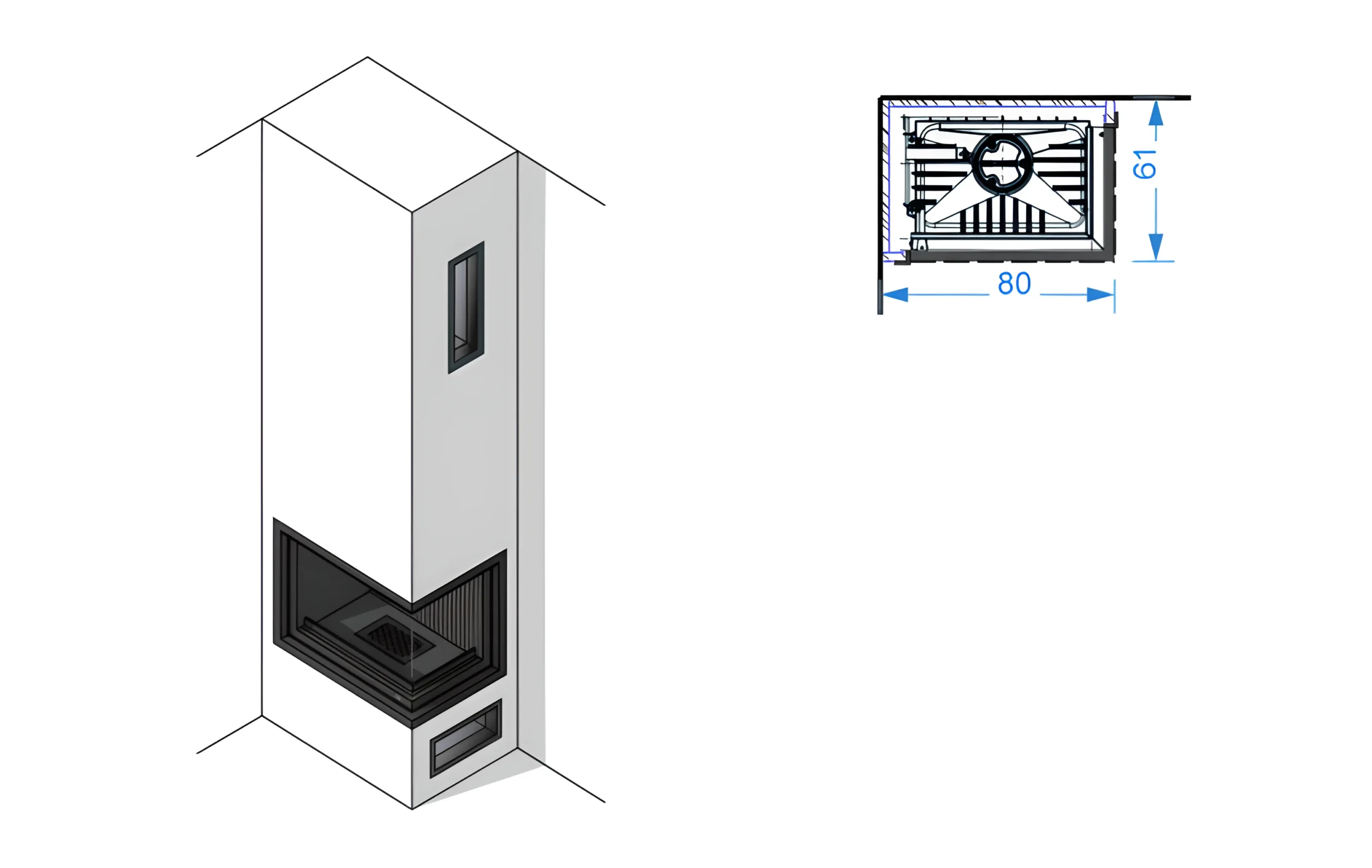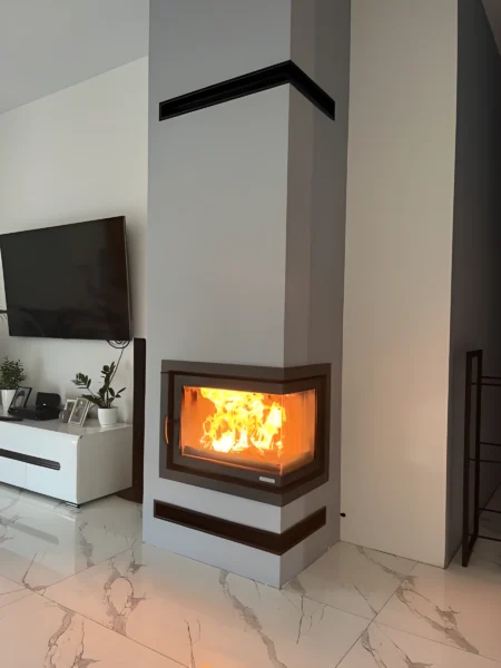 Drzwiczki kominka zostały dodatkowo wzmocnione profilem stalowym, dzięki czemu możemy się cieszyć ich niezawodnością i ponadczasowym designem.
