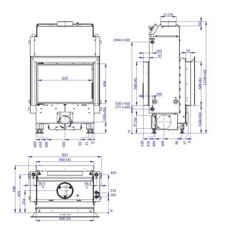 Wkład ROMOTOP DYNAMIC WB 2G 66.50.01 PODWÓJNA SZYBA, TYLNY ZAŁADUNEK Z PŁASZCZEM WODNYM z opcją montażu