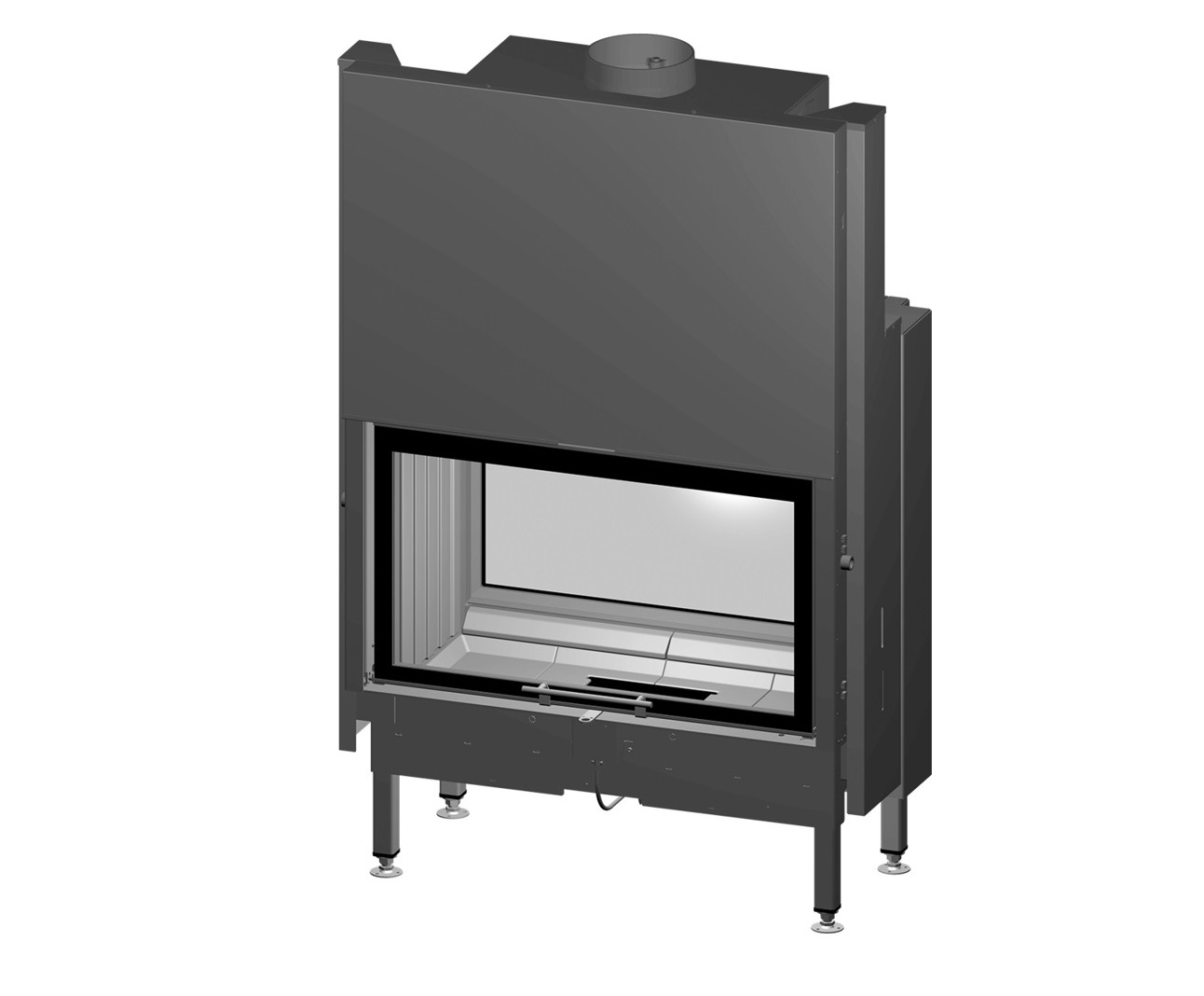 Drzwiczki kominka zostały dodatkowo wzmocnione profilem stalowym, dzięki czemu możemy się cieszyć ich niezawodnością i ponadczasowym designem.