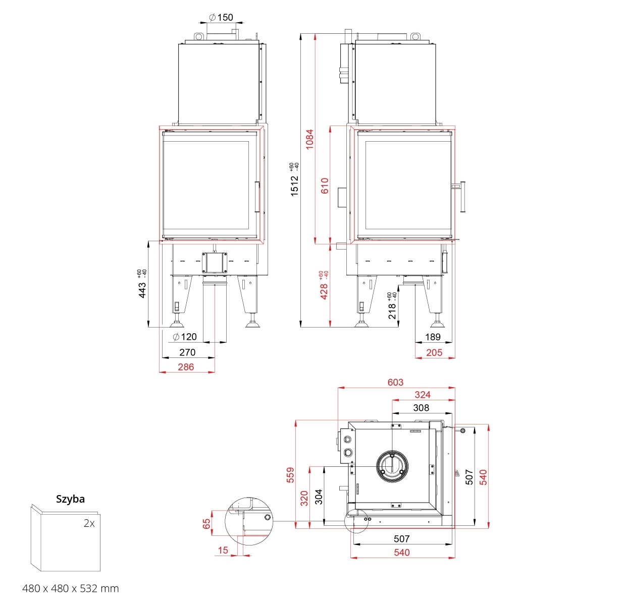 Kominek posiada wyłożenie komory spalania grubym szamotem, co poprawia wydajność urządzenia i przedłuża jego żywotność.