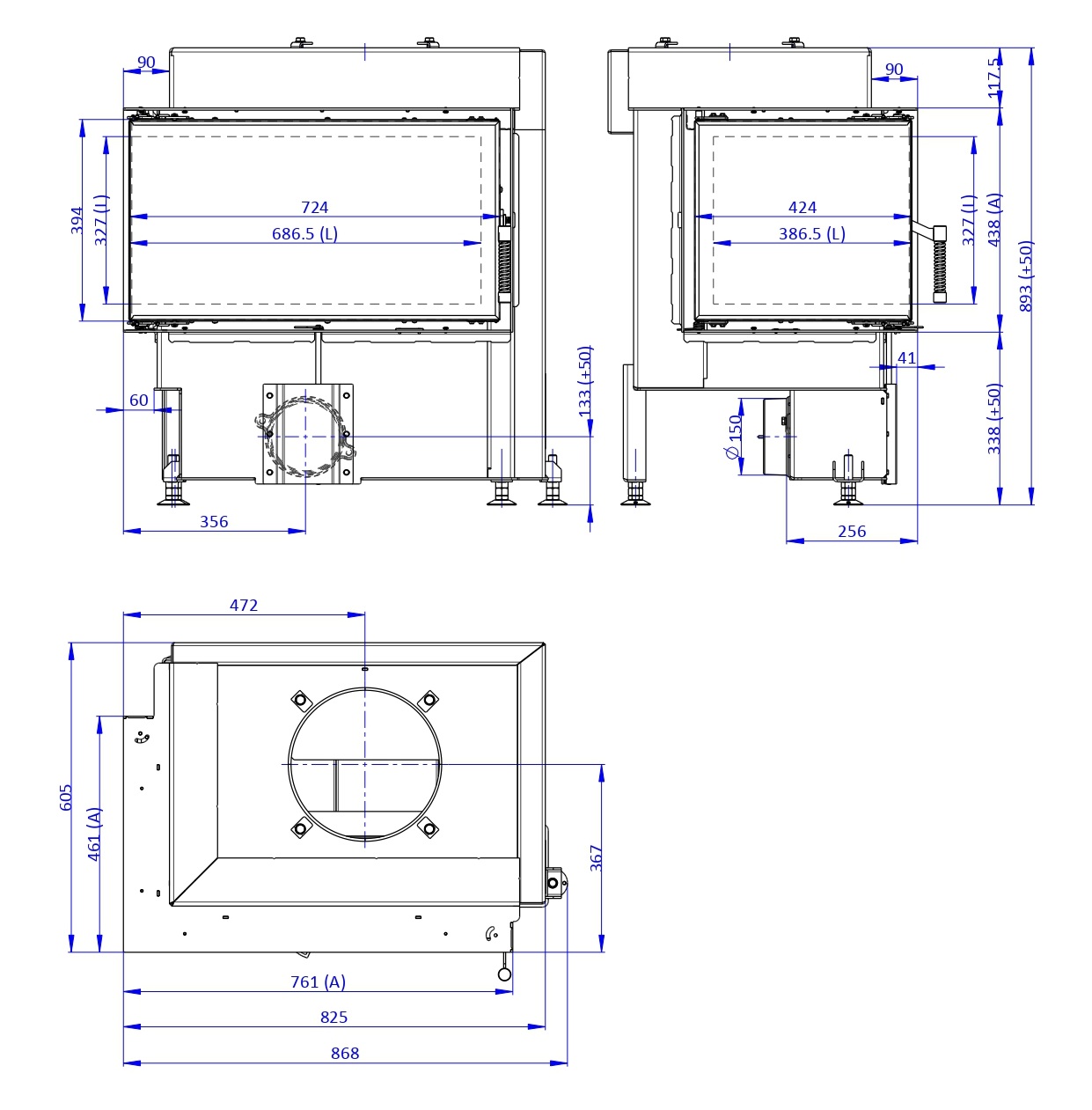 Drzwiczki kominka zostały dodatkowo wzmocnione profilem stalowym, dzięki czemu możemy się cieszyć ich niezawodnością i ponadczasowym designem.