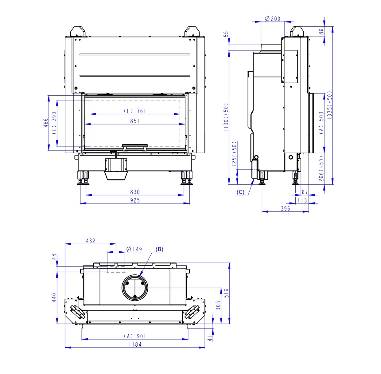 * Przy wyborze kominka z czarnym szamotem cena ulegnie zmianie.