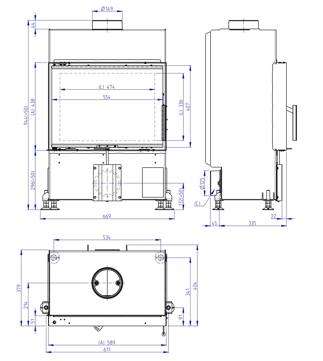 * Przy wyborze kominka z czarnym szamotem cena ulegnie zmianie.