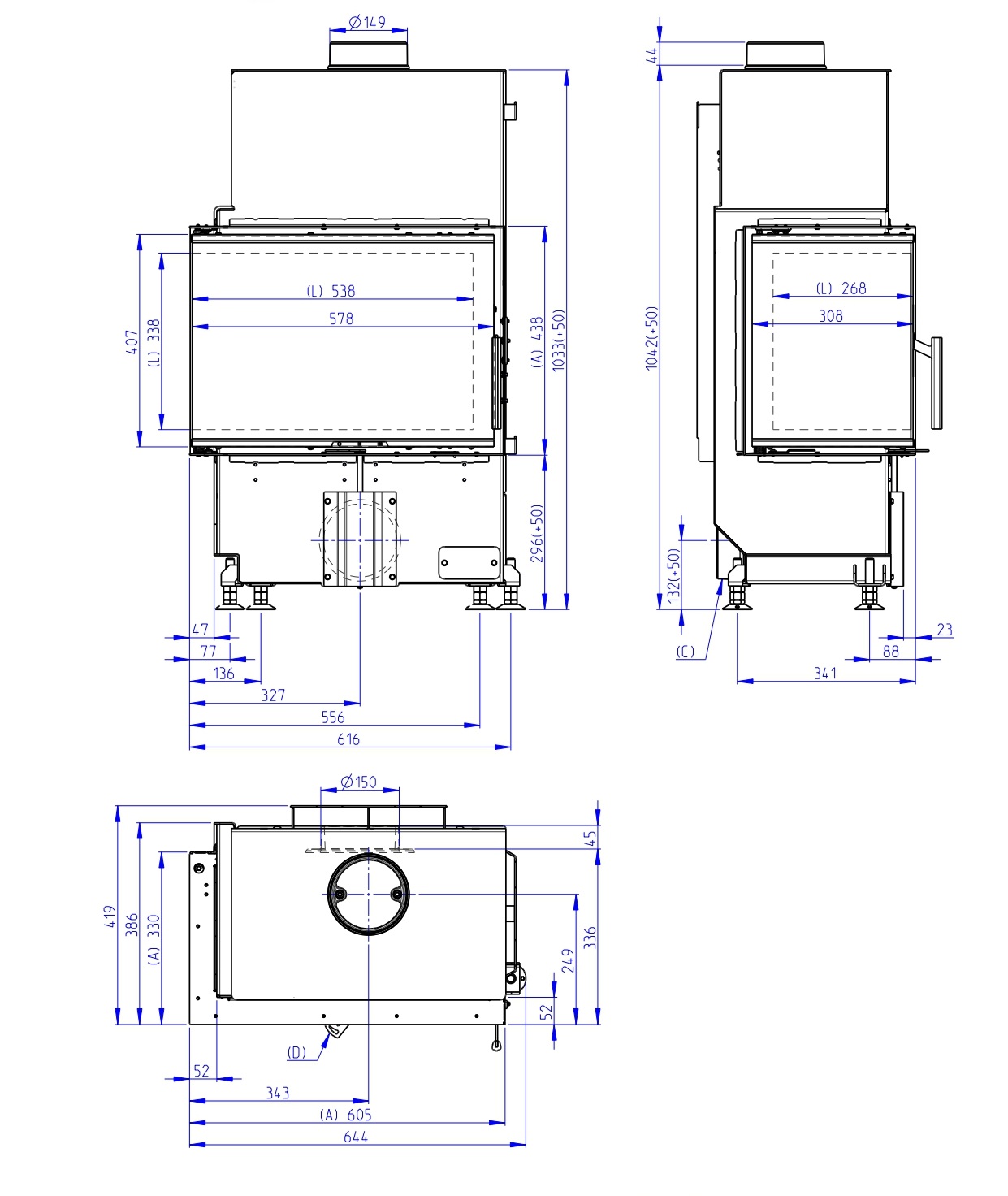 * Przy wyborze kominka z czarnym szamotem cena ulegnie zmianie.