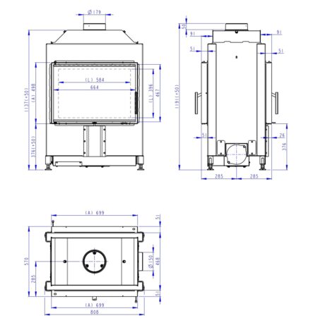 * Przy wyborze kominka z czarnym szamotem cena ulegnie zmianie.