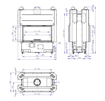 * Przy wyborze kominka z czarnym szamotem cena ulegnie zmianie.